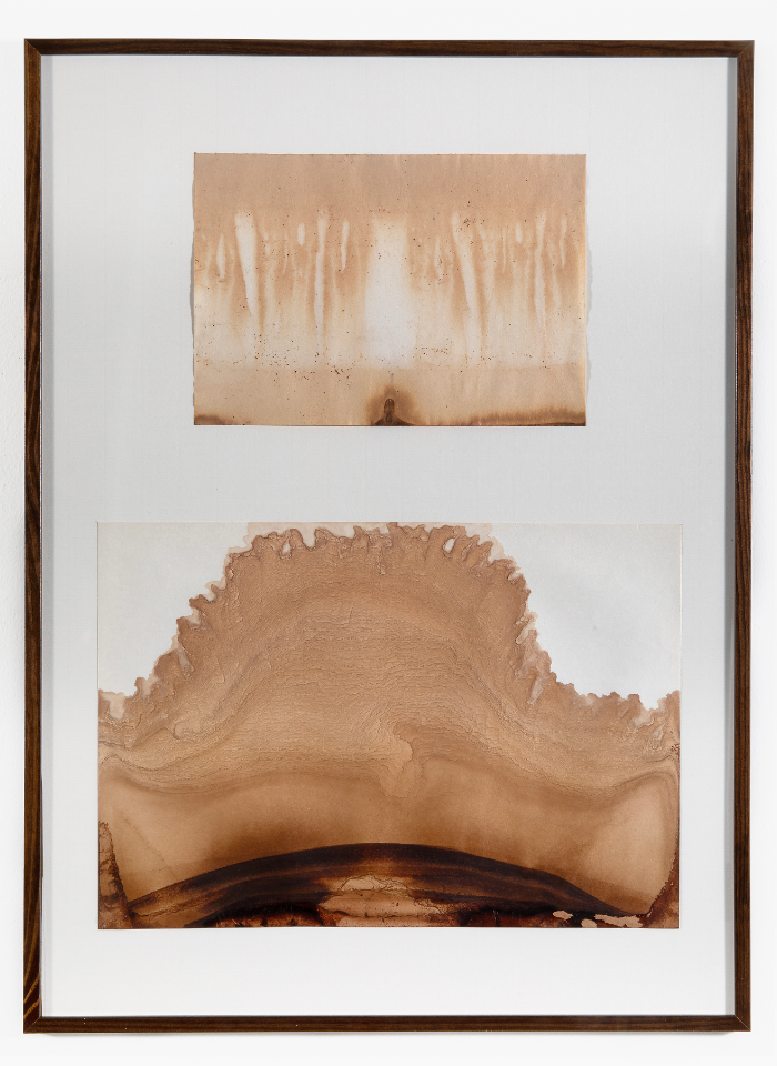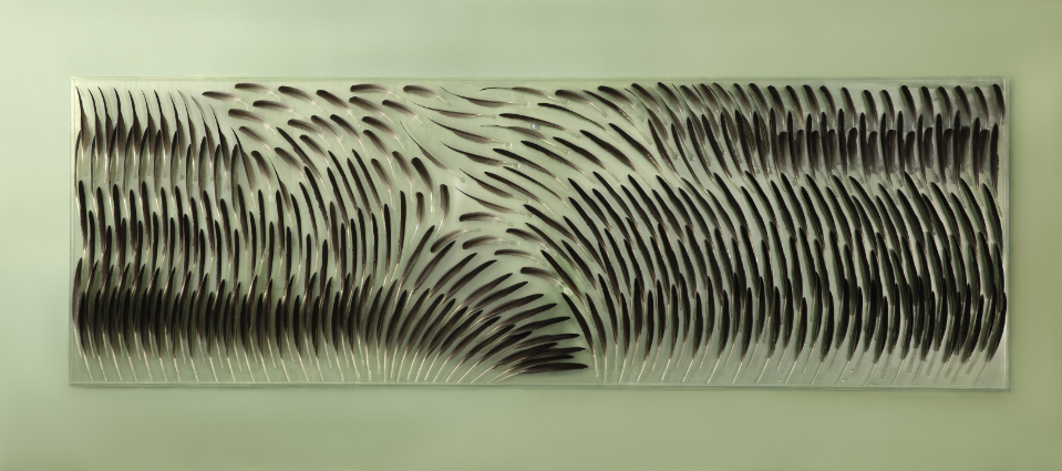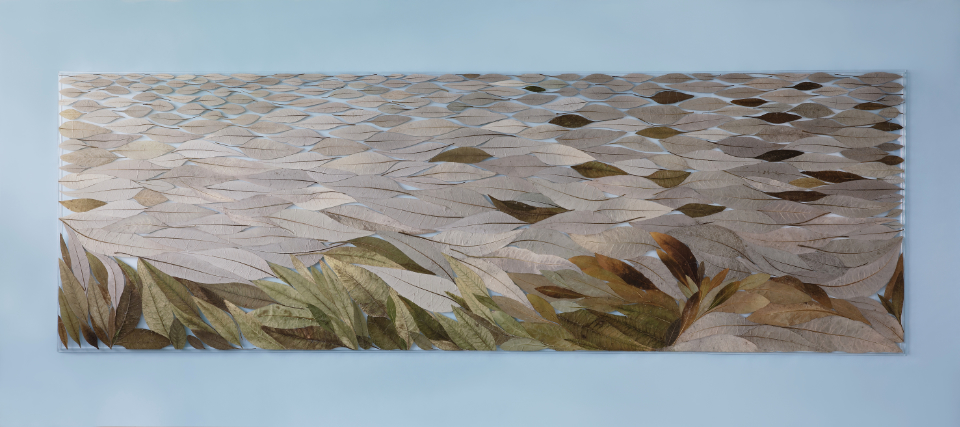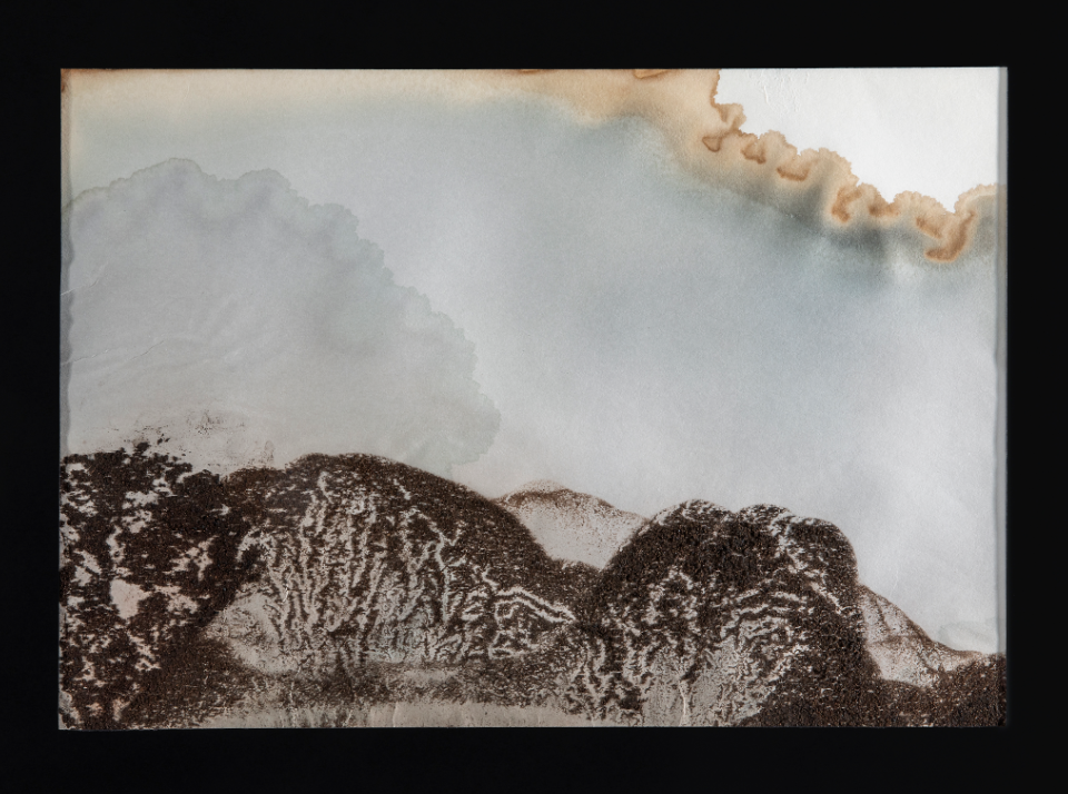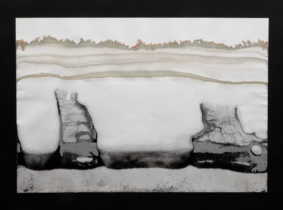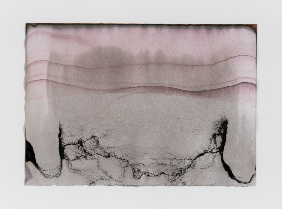 Bark is the skin of birchtree. It has been coating the tree at the mercy of weather, gathering inside itself colours that depend on the direction of sunlight, winds and the climate over time. There is a whole palette of colours inside the layers of bark. The patterns, lines and the merging colours on the bark remind me of the scenery around the birches: morning glows, sunsets, clouds, rain and the reflections mirrored by the lake. Those moments, tattooed in the skin of the birch are the reason and start for these works of mine. I would call them weather maps and landscape paintings.