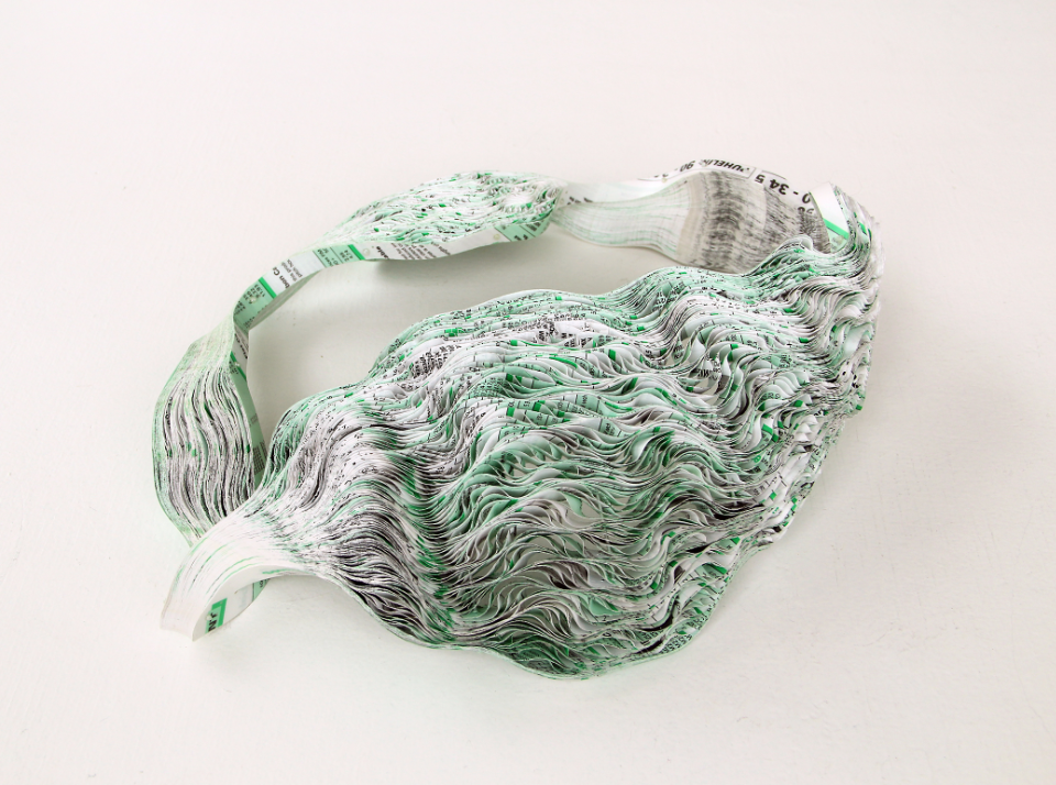 I can make the rules, but the piece takes the shape of its own. When certain formed components start to follow each other and find their rhythm in my hands, the miracle happens. It is a slow, meditative, and a very natural process. I use printed paper, maps, catalogues, dictionary books. They are rich by their past, carrying along certain places and accidental meanings. This material also gives the pieces their individual exterior and interior decoration – their ornaments. I see wood, stone, bone, feather, fur, field, velvet.